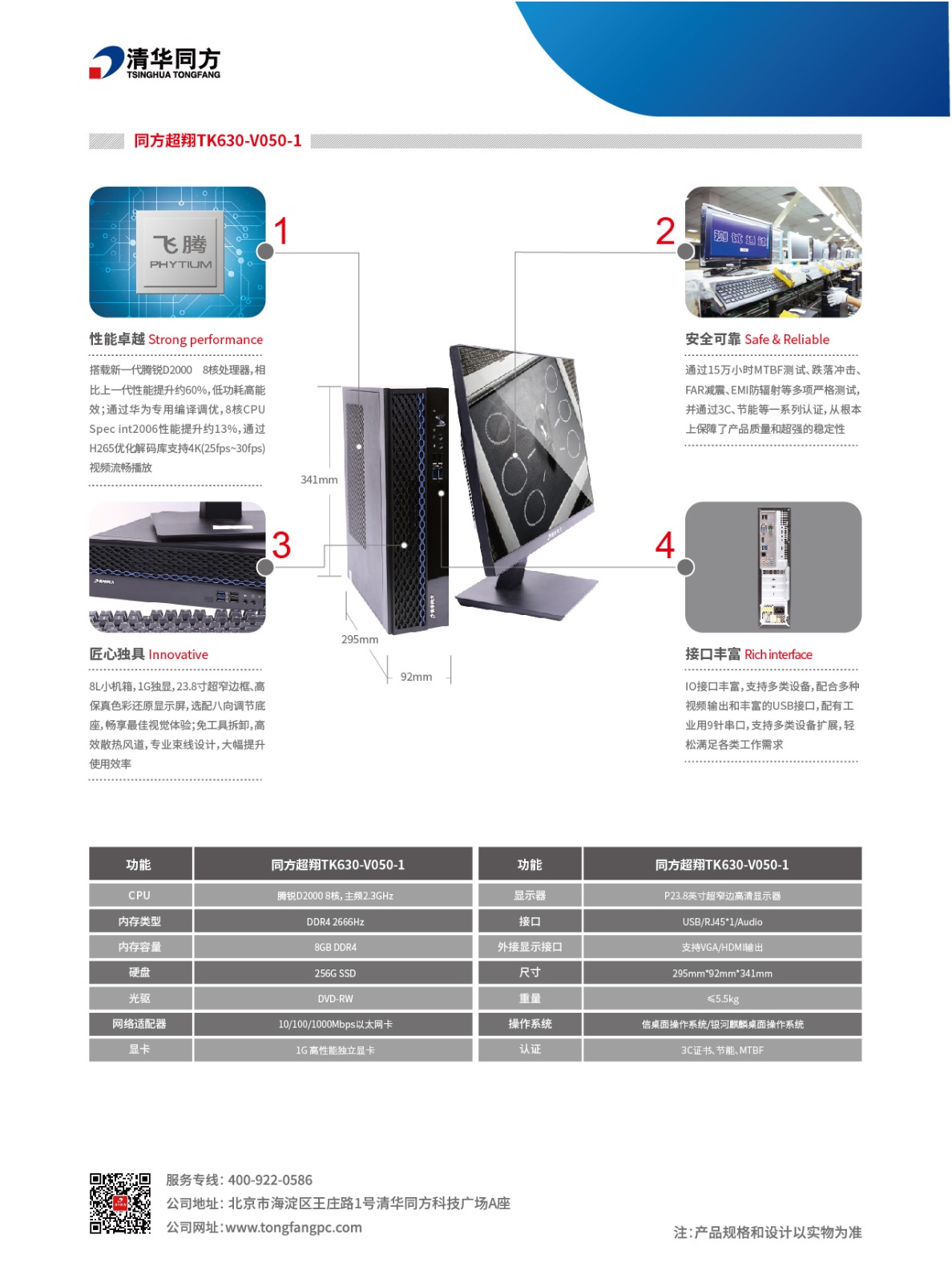 清華同方/THTF 臺式計算機 超翔TK630-V050-1 23.8英寸超窄邊高清顯示器